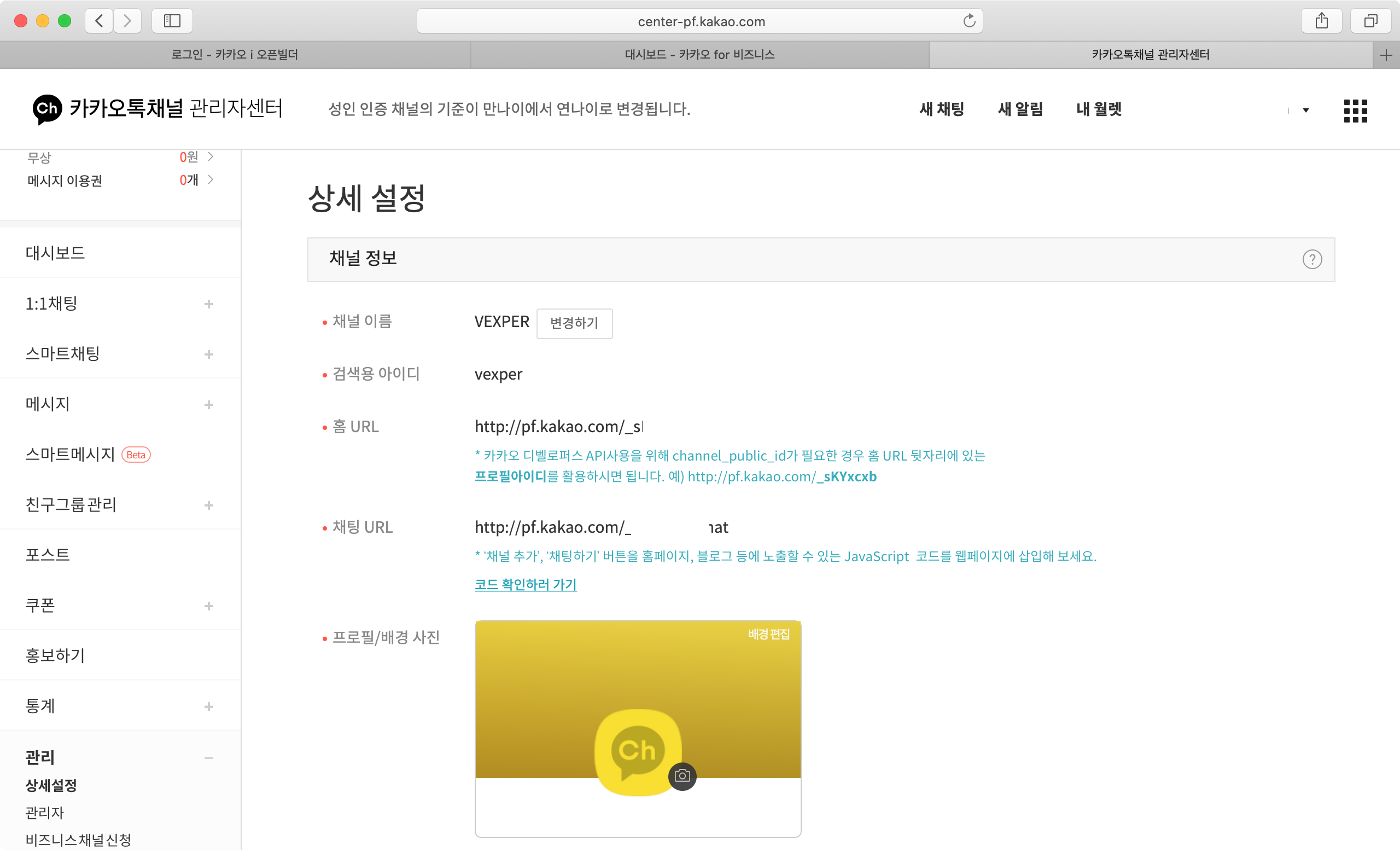 채널 생성이 완료되면 홈 URL을 부여받는다. OBT승인을 위해서 필요하니, 복사해 둔다.