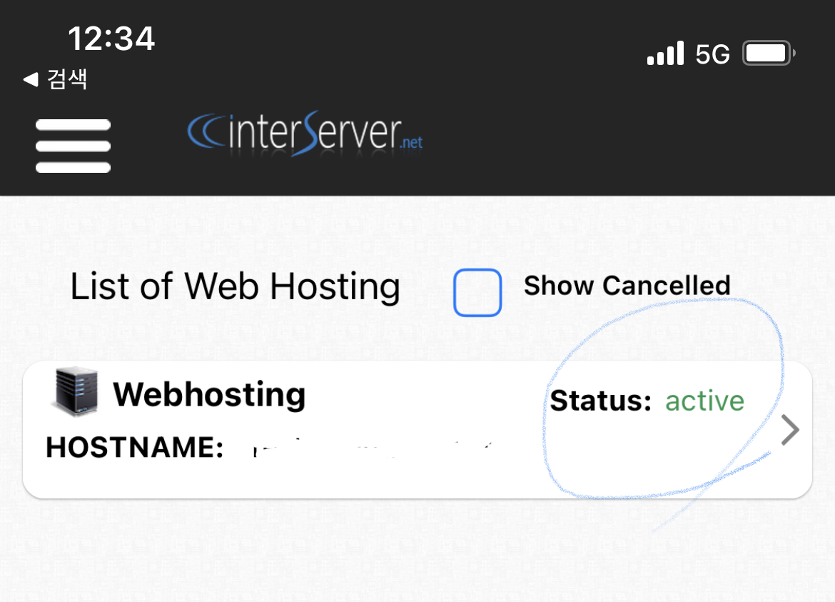 결제 완료 후 결제상태 및 환경설정을 위해서는 상단 메뉴에서 webhosting을 선택한다. 그러면 본인이 구독한 서비스의 도메인이 표시되는데, 이를 클릭해서 들어가면 사진과 같은 서비스 정보 화면에 접속 된다.