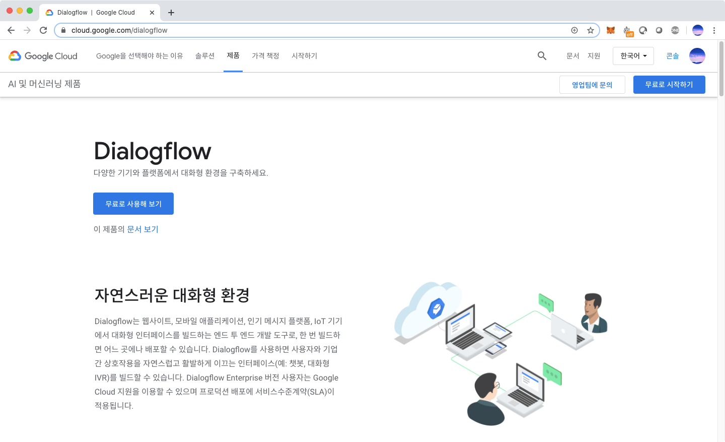 Google의 챗봇 서비스가 Dialogflow이다. 2019년 Top 26 챗봇 중에서 본 포스팅에서는 7위 까지만 소개하기로 하였는데, 구글 Dialogflow가 7위였기 때문이다. MS, IBM, Amazon과 함께 인공지능의 선두주자일뿐만 아니라 한국어를 자연스럽게 지원하는 챗봇이기 때문에 다른 챗봇보다도 Dialogflow는 소개를 해야 할 것 같았다.