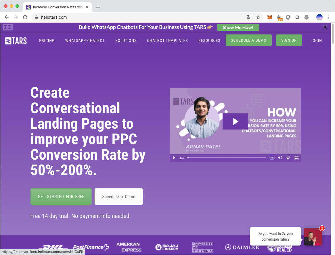 TARS는 Whatsapp 메신저 연동에 특화되어 있다. 뿐만아니라 보험, 모기지, 부동산, 법률서비스, 헬스케어, 교육에 최적화된 950개 이상의 방대한 템플릿을 제공한다는 장점을 갖고 있다.