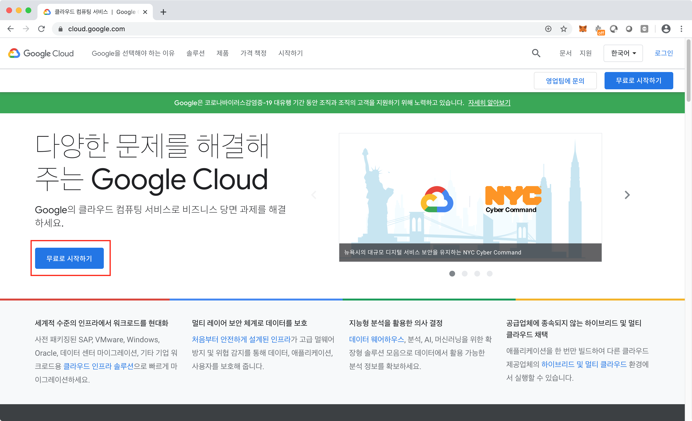 위의 링크를 클릭하면 구글 클라우드 한국 페이지로 연결된다.